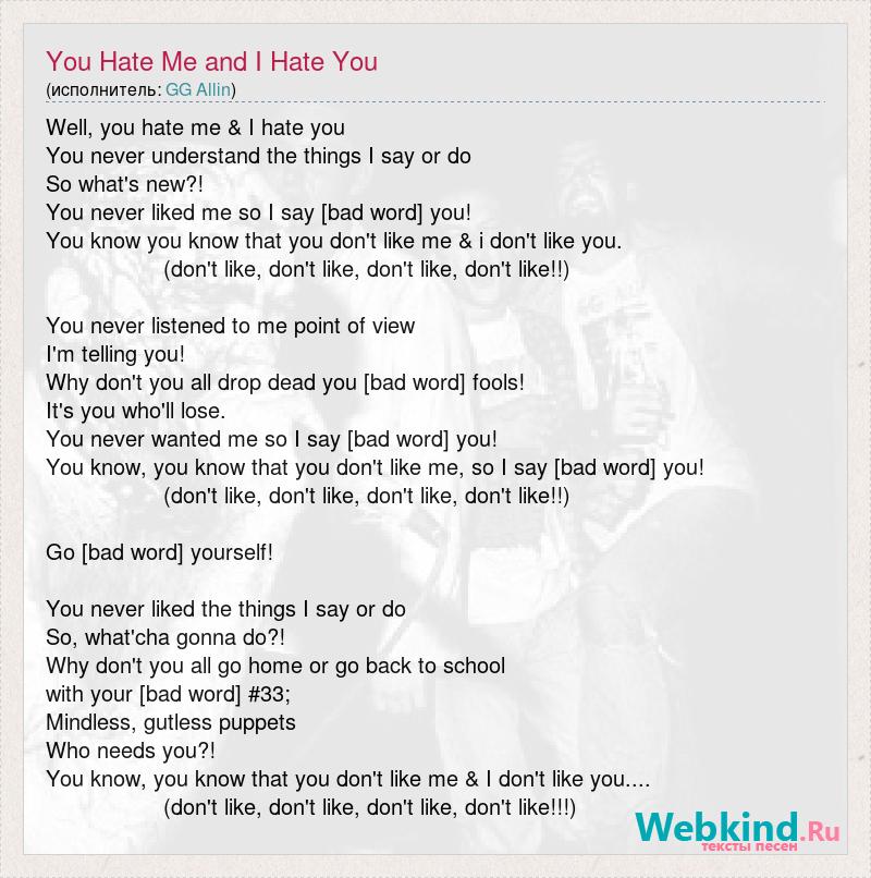 А как ты думаешь, о чем песня "You Hate Me and I Hate You" ?