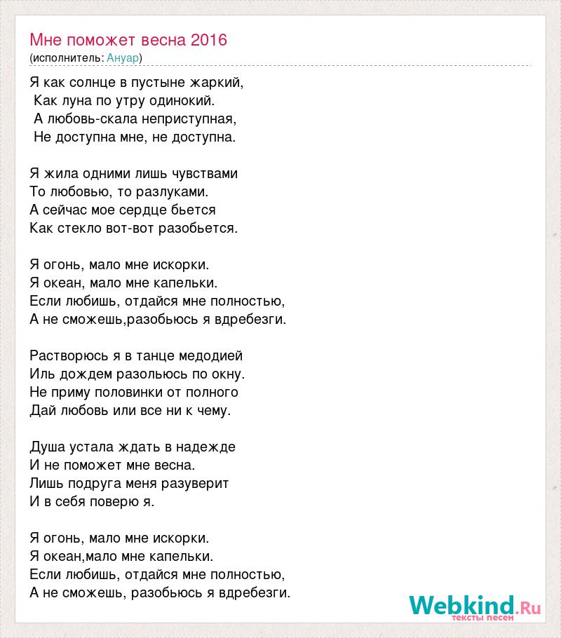 А как ты думаешь, о чем песня "Мне поможет весна 2016" ?