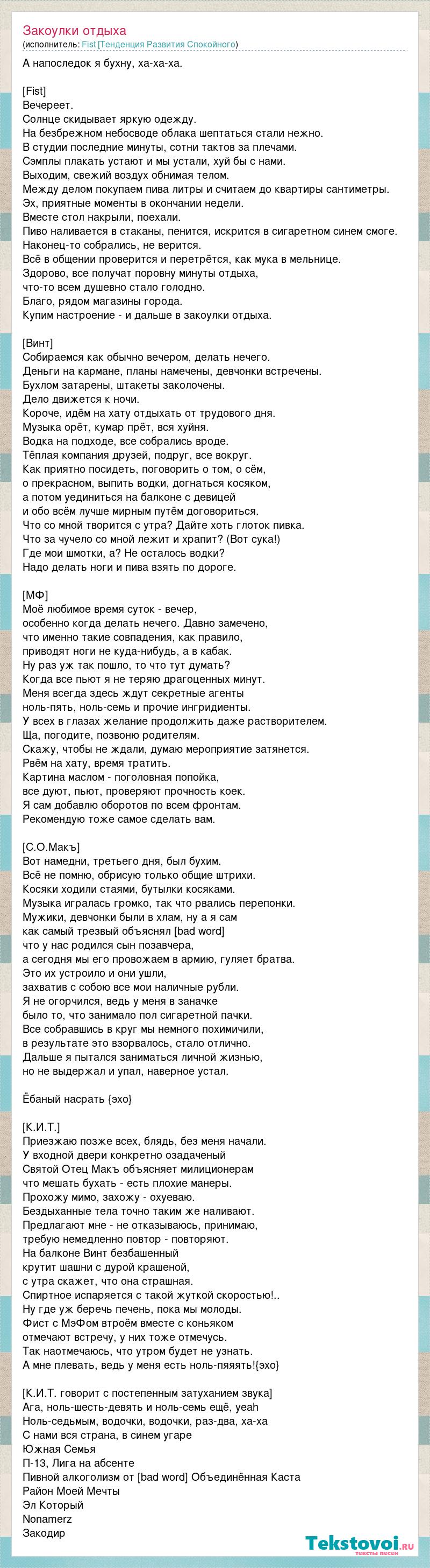 А как ты думаешь, о чем песня "Закоулки отдыха" ?