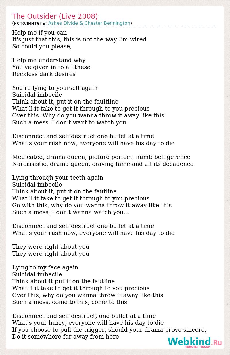 А как ты думаешь, о чем песня "The Outsider (Live 2008)" ?