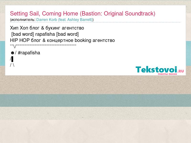 Главная→Исполнители→Darren Korb (feat. Ashley Barrett)→Setting Sail, Coming Home (Bastion: Original Soundtrack)
