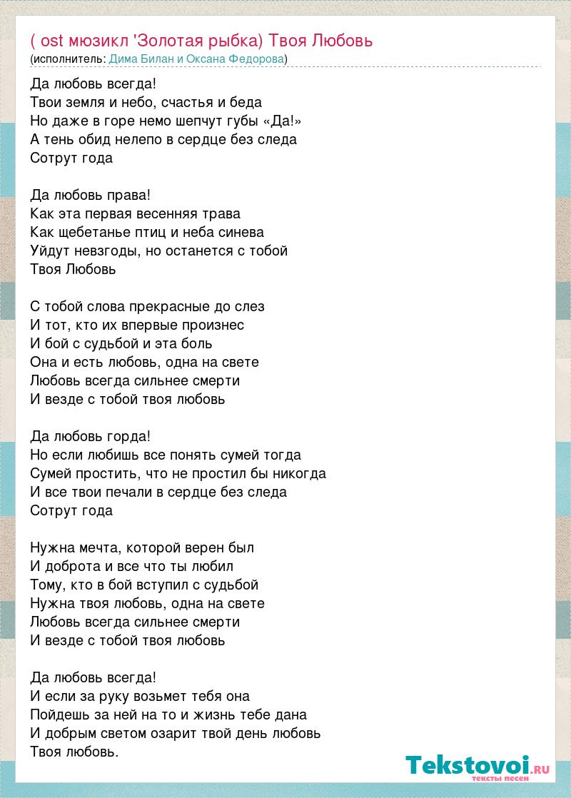 ( ost мюзикл 'Золотая рыбка) Твоя Любовь