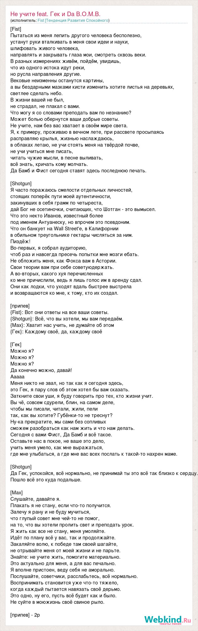 А как ты думаешь, о чем песня "Не учите feat. Гек и Da B.O.M.B." ?