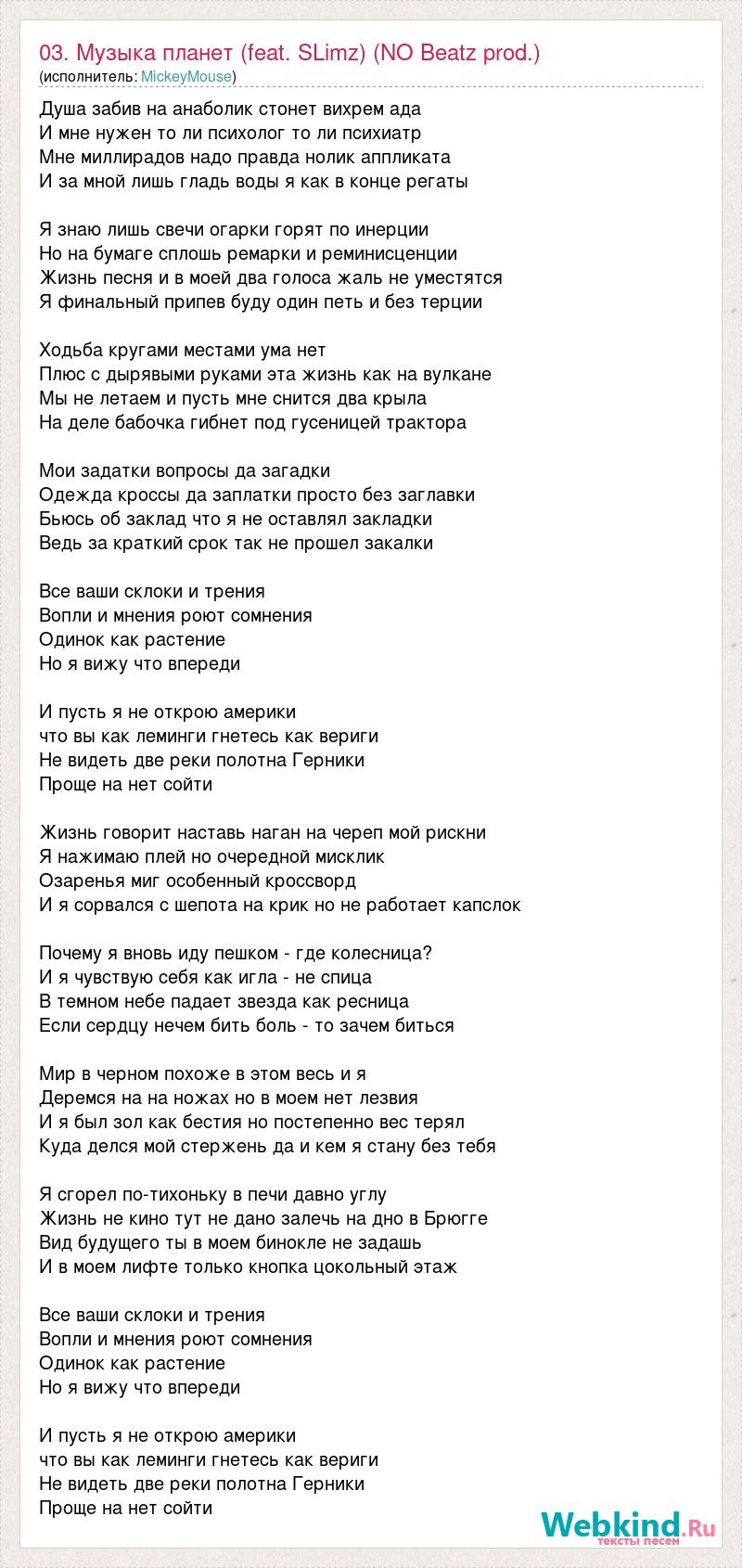 А как ты думаешь, о чем песня "03. Музыка планет (feat. SLimz) (NO Beatz prod.)" ?