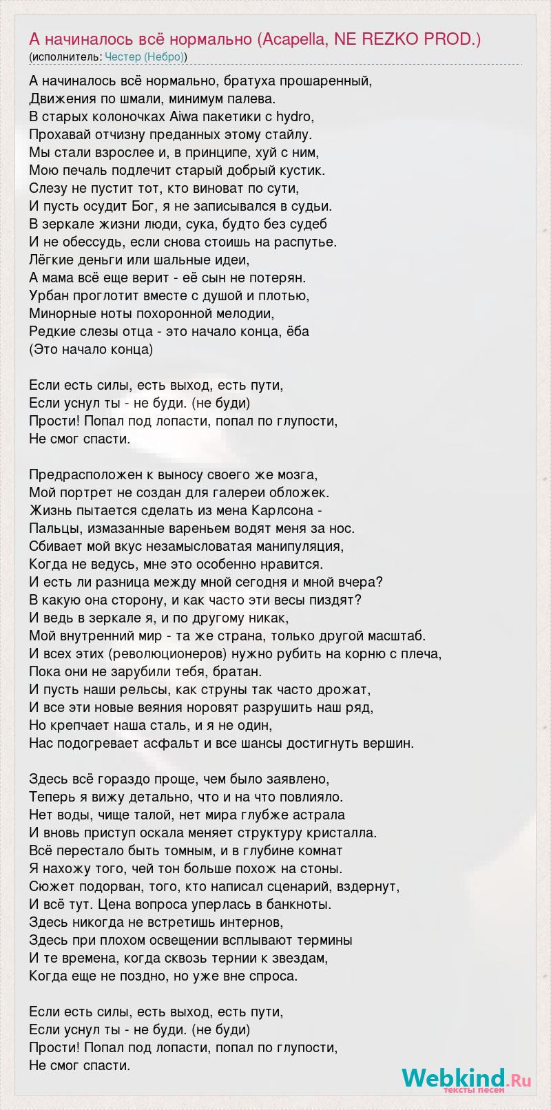 А как ты думаешь, о чем песня "А начиналось всё нормально (Acapella, NE REZKO PROD.)" ?