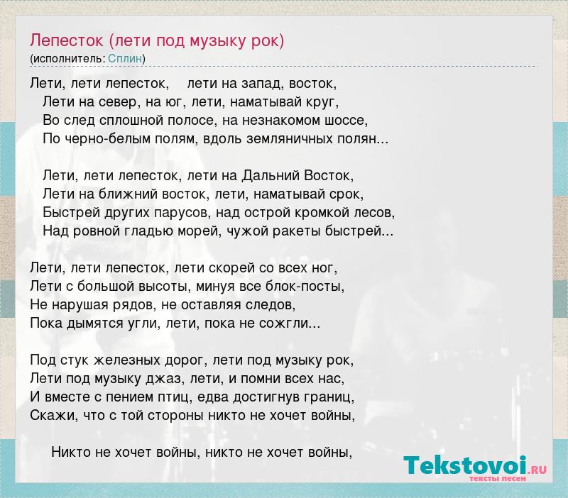 А как ты думаешь, о чем песня "Лепесток (лети под музыку рок)" ?