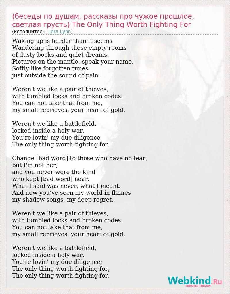 А как ты думаешь, о чем песня "(беседы по душам, рассказы про чужое прошлое, светлая грусть) The Only Thing Wor" ?