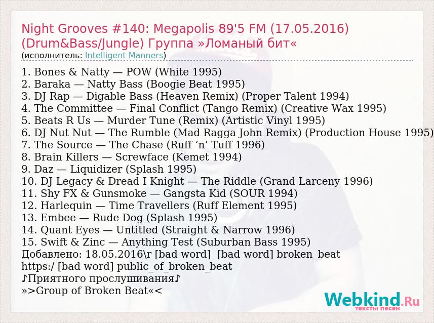 Night Grooves #140: Megapolis 89'5 FM (17.05.2016) (Drum&Bass/Jungle)