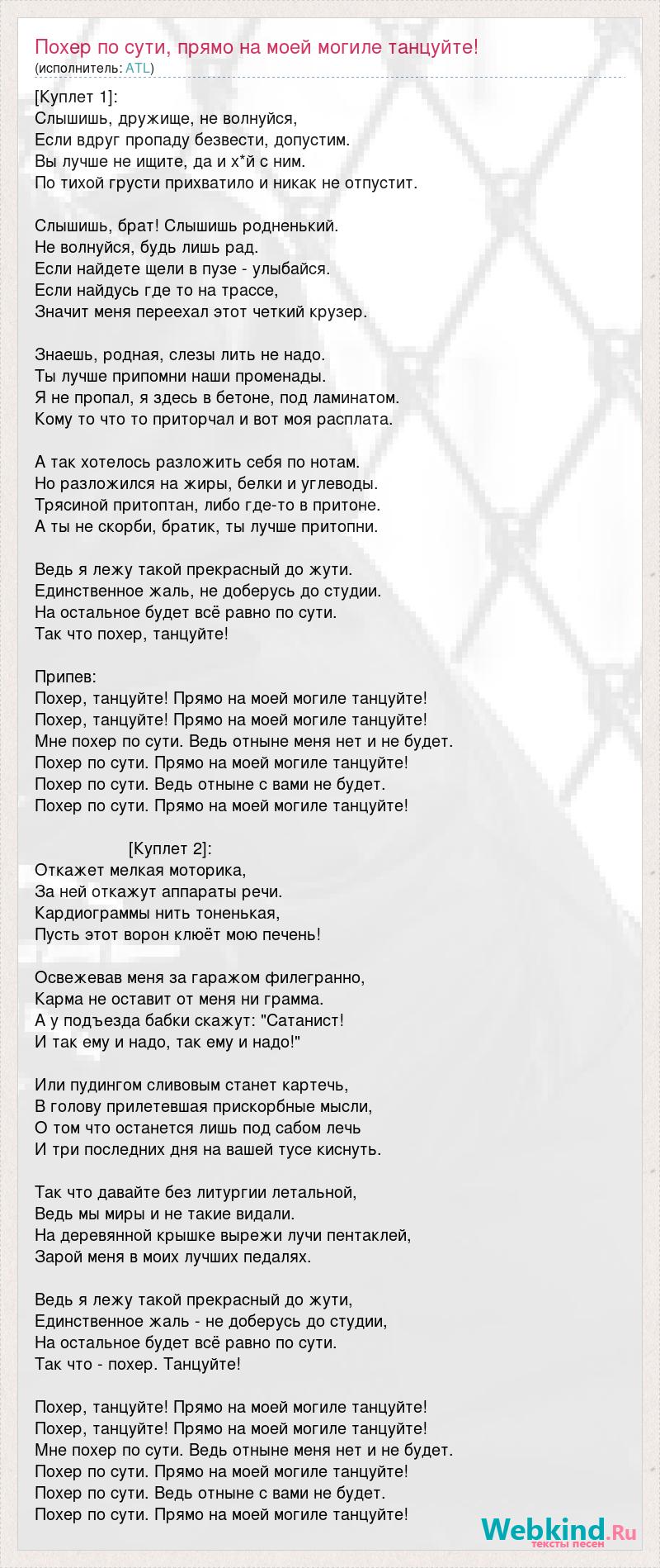 А как ты думаешь, о чем песня "Похер по сути, прямо на моей могиле танцуйте!" ?