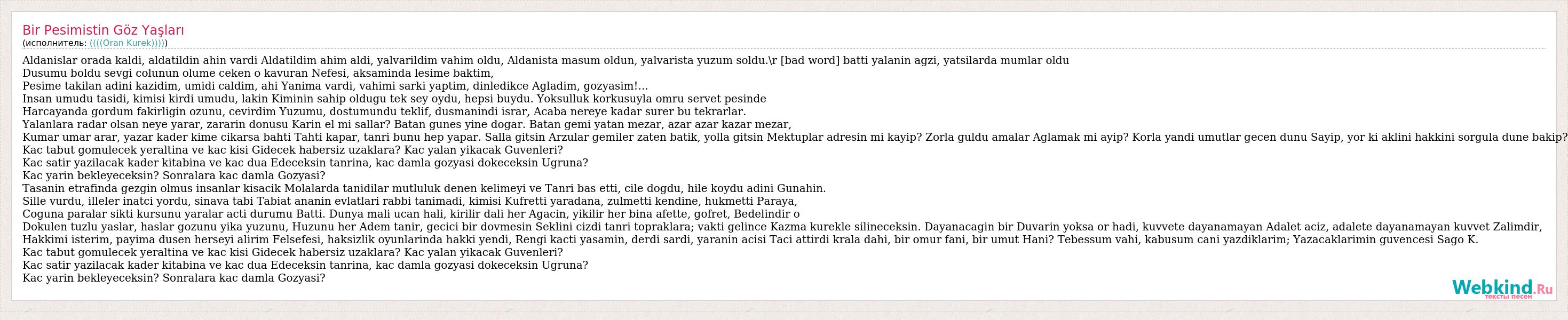 А как ты думаешь, о чем песня "Bir Pesimistin Göz Yaşları" ?