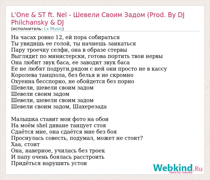 А как ты думаешь, о чем песня "L'One & ST ft. Nel - Шевели Своим Задом (Prod. By DJ Philchansky & D" ?