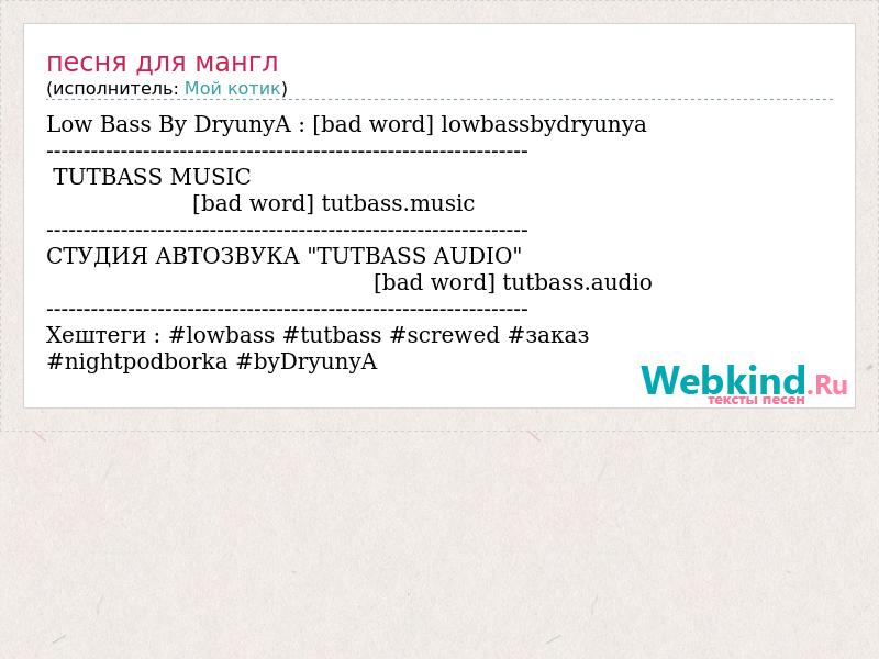 Хештеги : #lowbass #tutbass #screwed #заказ