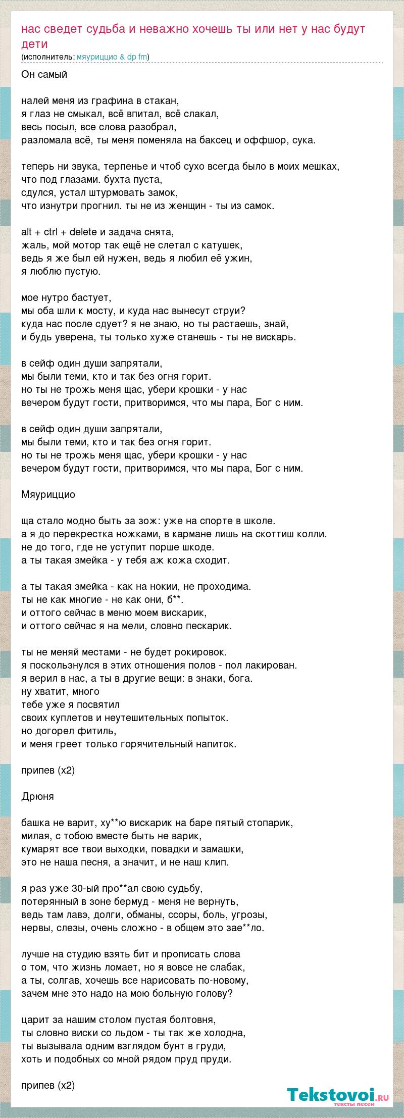 Главная→Исполнители→Мяуриццио & dp fm→Нас сведет судьба и неважно хочешь ты или нет у нас будут дети