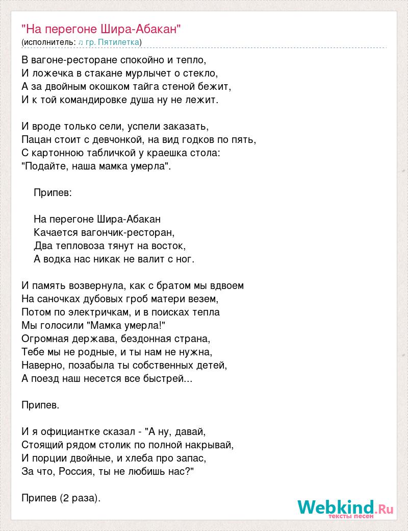 А как ты думаешь, о чем песня ""На перегоне Шира-Абакан"" ?