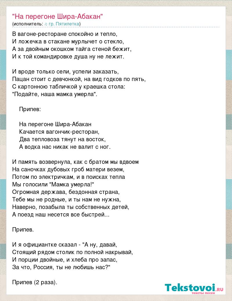 А как ты думаешь, о чем песня ""На перегоне Шира-Абакан"" ?