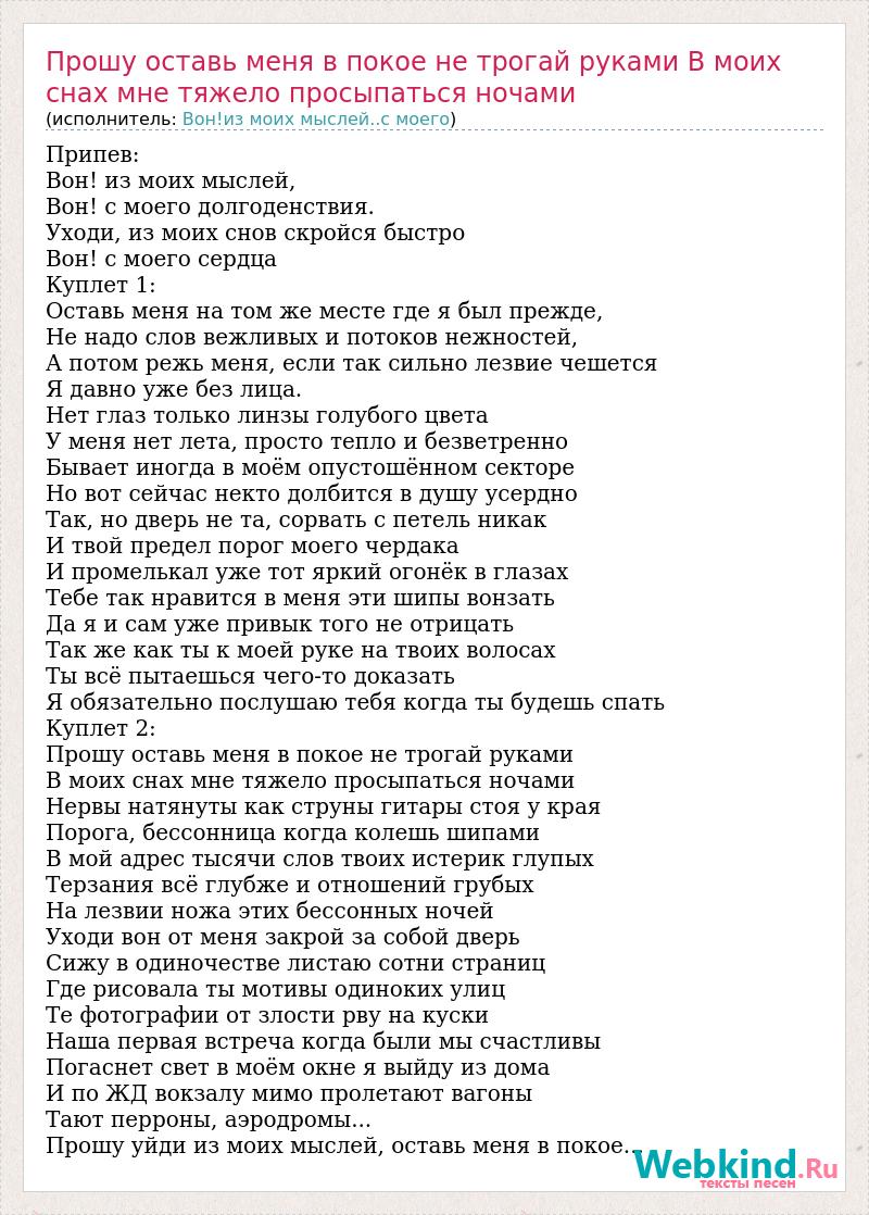 Главная→Исполнители→Вон!из моих мыслей..с моего→Прошу оставь меня в покое не трогай руками В моих снах мне тяжело просыпаться