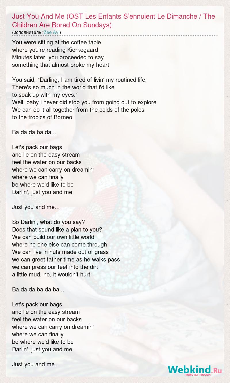 А как ты думаешь, о чем песня "Just You And Me (OST Les Enfants S’ennuient Le Dimanche / The Children A" ?