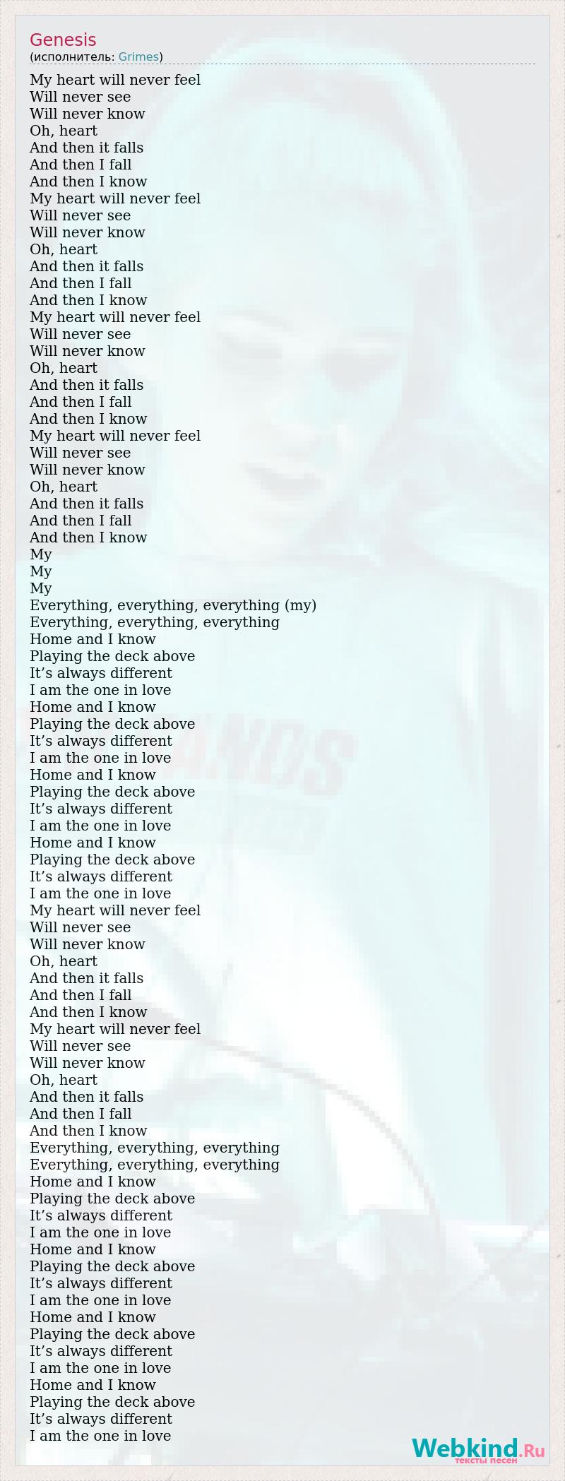 My heart will never feel Will never see Will never know Oh, heart And then it falls And then I fall And then I know My heart will never feel Will never see Will never know Oh, heart And then it falls And then I fall And then I know My heart will never feel Will never see Will never know Oh, heart And then it falls And then I fall And then I know My heart will never feel Will never see Will never know Oh, heart And then it falls And then I fall And then I know My My My Everything, everything, everything (my) Everything, everything, everything Home and I know Playing the deck above It’s always different I am the one in love Home and I know Playing the deck above It’s always different I am the one in love Home and I know Playing the deck above It’s always different I am the one in love Home and I know Playing the deck above It’s always different I am the one in love My heart will never feel Will never see Will never know Oh, heart And then it falls And then I fall And then I know My heart will never feel Will never see Will never know Oh, heart And then it falls And then I fall And then I know Everything, everything, everything Everything, everything, everything Home and I know Playing the deck above It’s always different I am the one in love Home and I know Playing the deck above It’s always different I am the one in love Home and I know Playing the deck above It’s always different I am the one in love Home and I know Playing the deck above It’s always different I am the one in love
