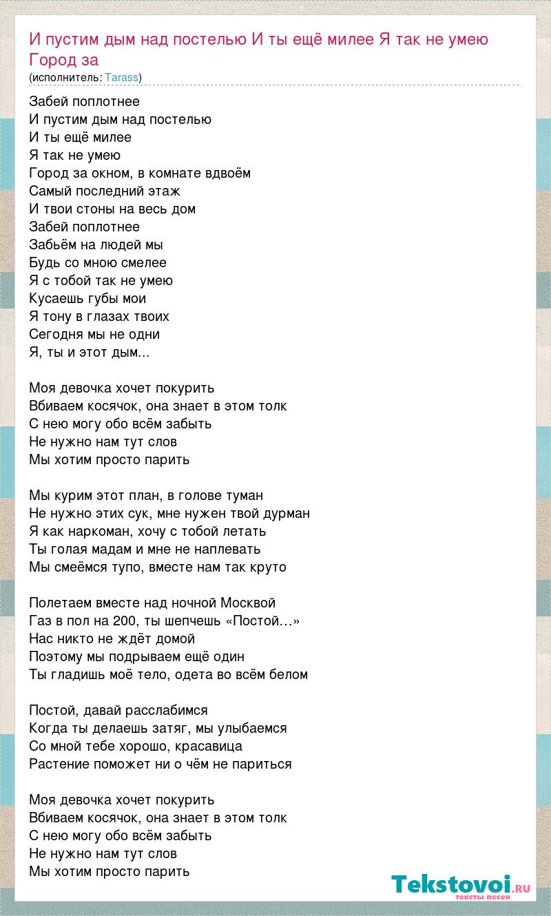 И пустим дым над постелью И ты ещё милее Я так не умею Город за