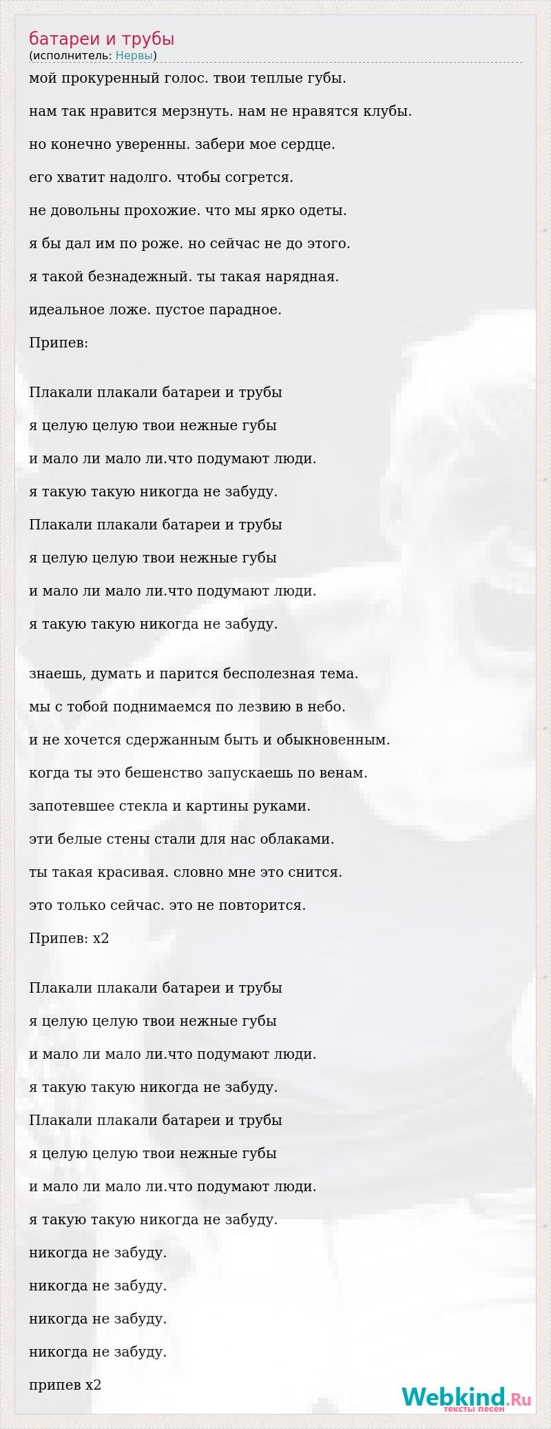 А как ты думаешь, о чем песня "Батареи и трубы" ?