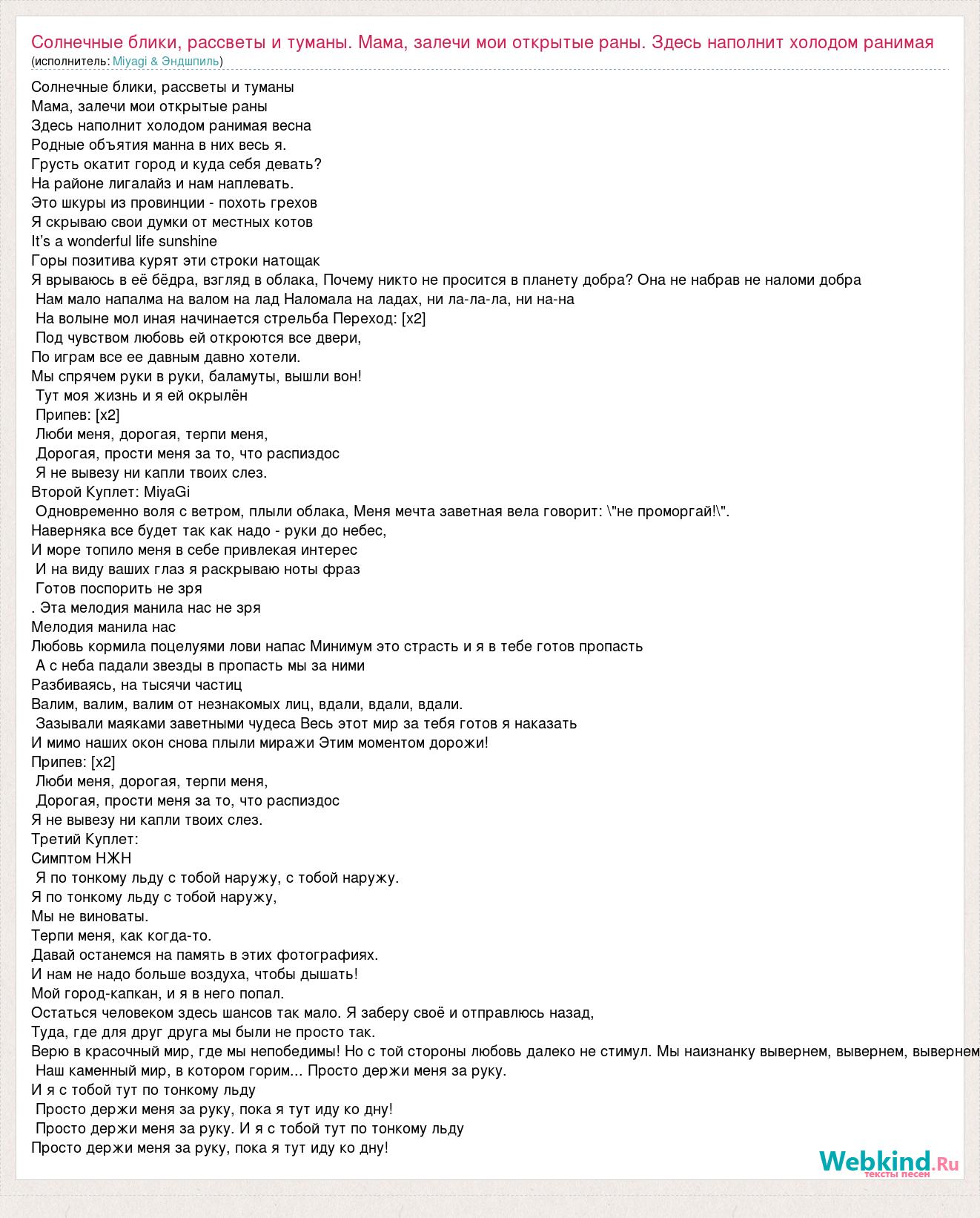 Главная→Исполнители→Miyagi & Эндшпиль→Солнечные блики, рассветы и туманы. Мама, залечи мои открытые раны. Здесь