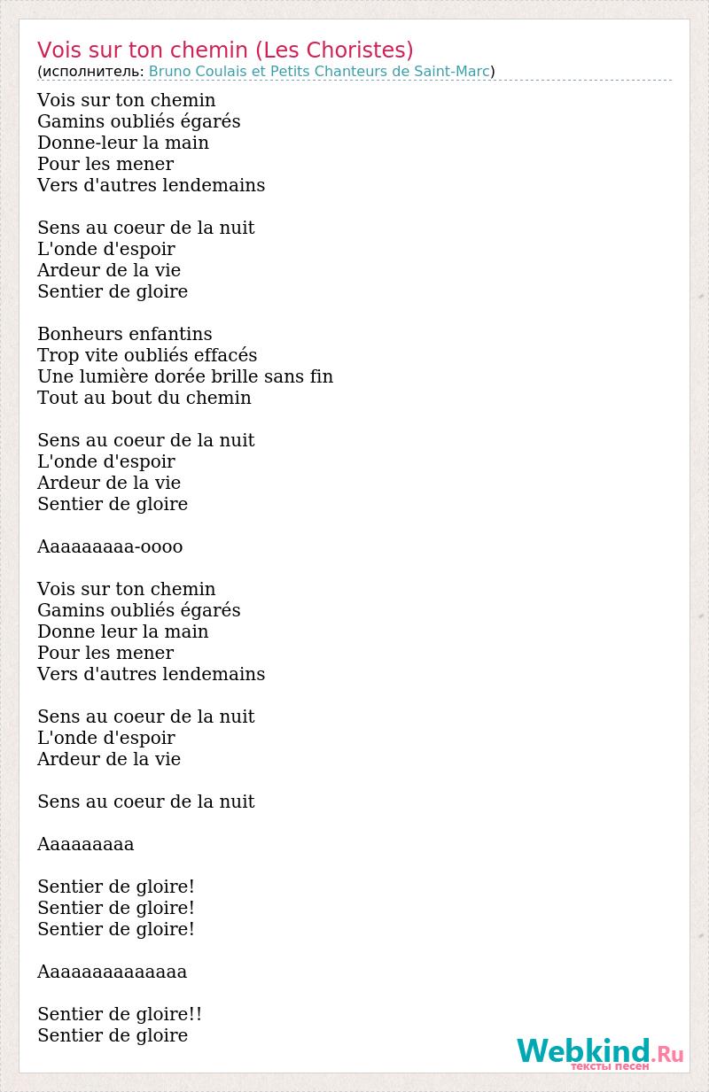 А как ты думаешь, о чем песня "Vois sur ton chemin (Les Choristes)" ?