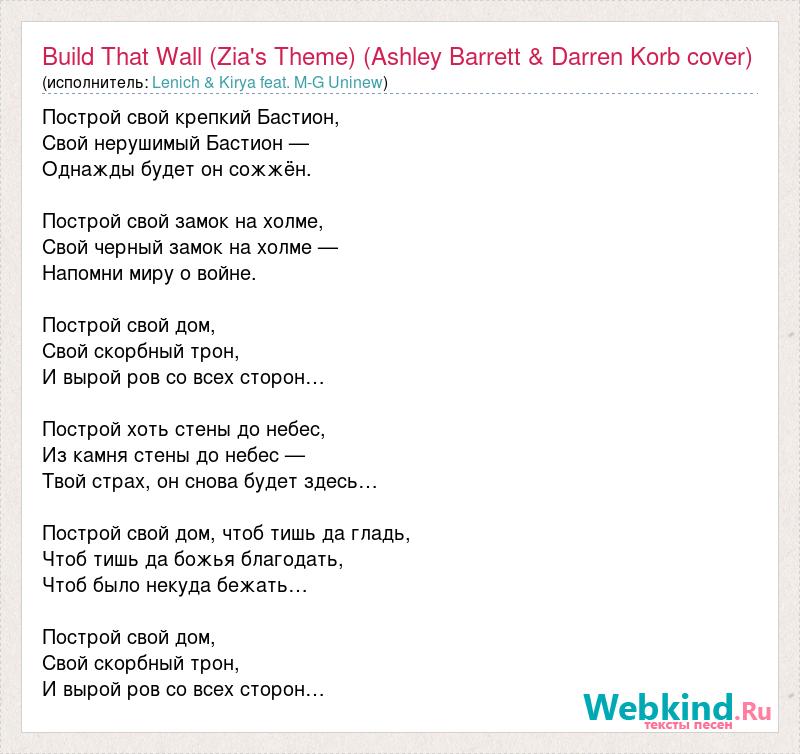 А как ты думаешь, о чем песня "Build That Wall (Zia's Theme) (Ashley Barrett & Darren Korb cover)" ?