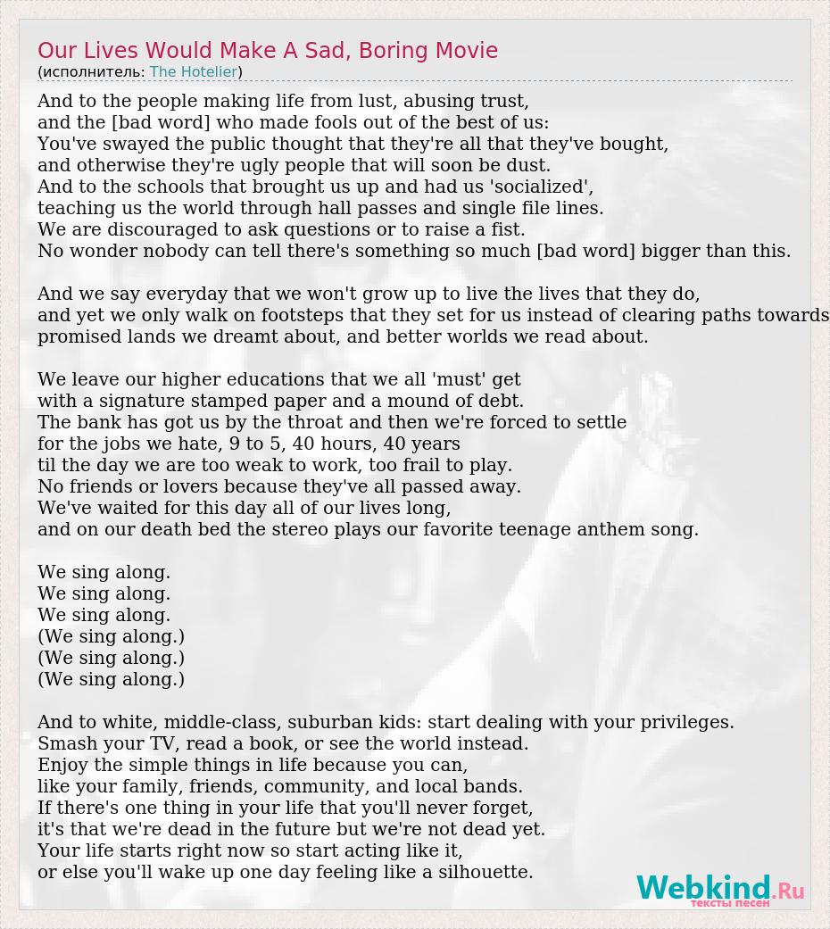 А как ты думаешь, о чем песня "Our Lives Would Make A Sad, Boring Movie" ?