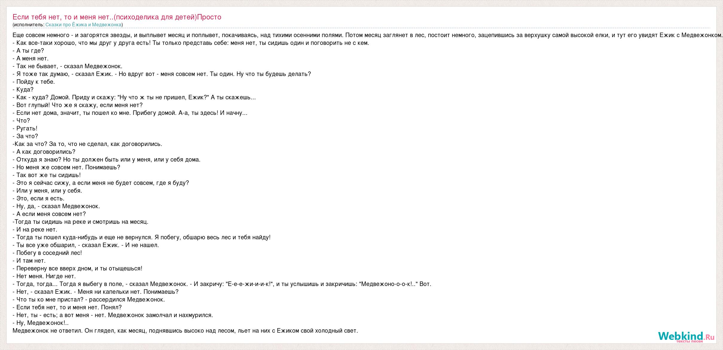 Главная→Исполнители→Сказки про Ёжика и Медвежонка→Если тебя нет, то и меня нет..(психоделика для детей)Просто космос,а не ск