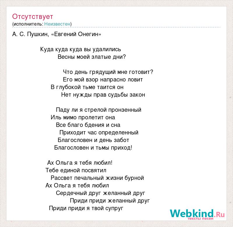 А как ты думаешь, о чем песня "А. С. Пушкин, «Евгений Онегин»" ?