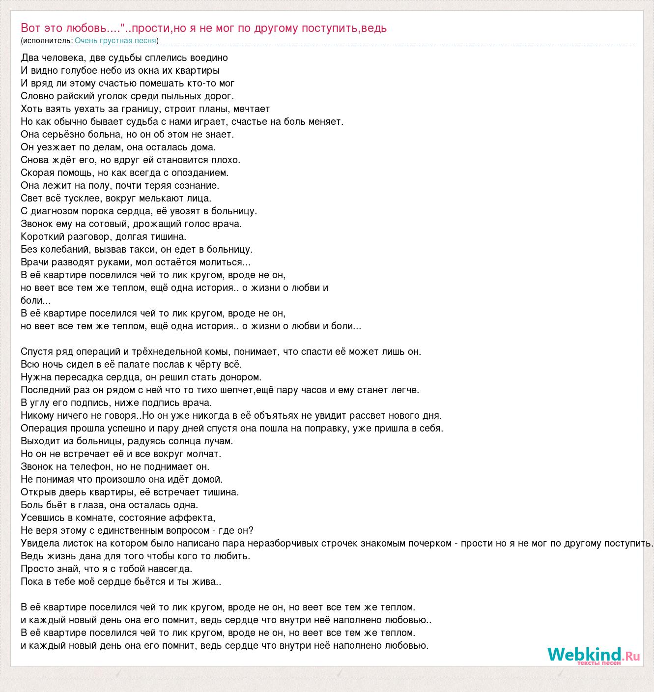 Главная→Исполнители→Очень грустная песня→Вот это любовь...."..прости,но я не мог по другому поступить,ведь жизн