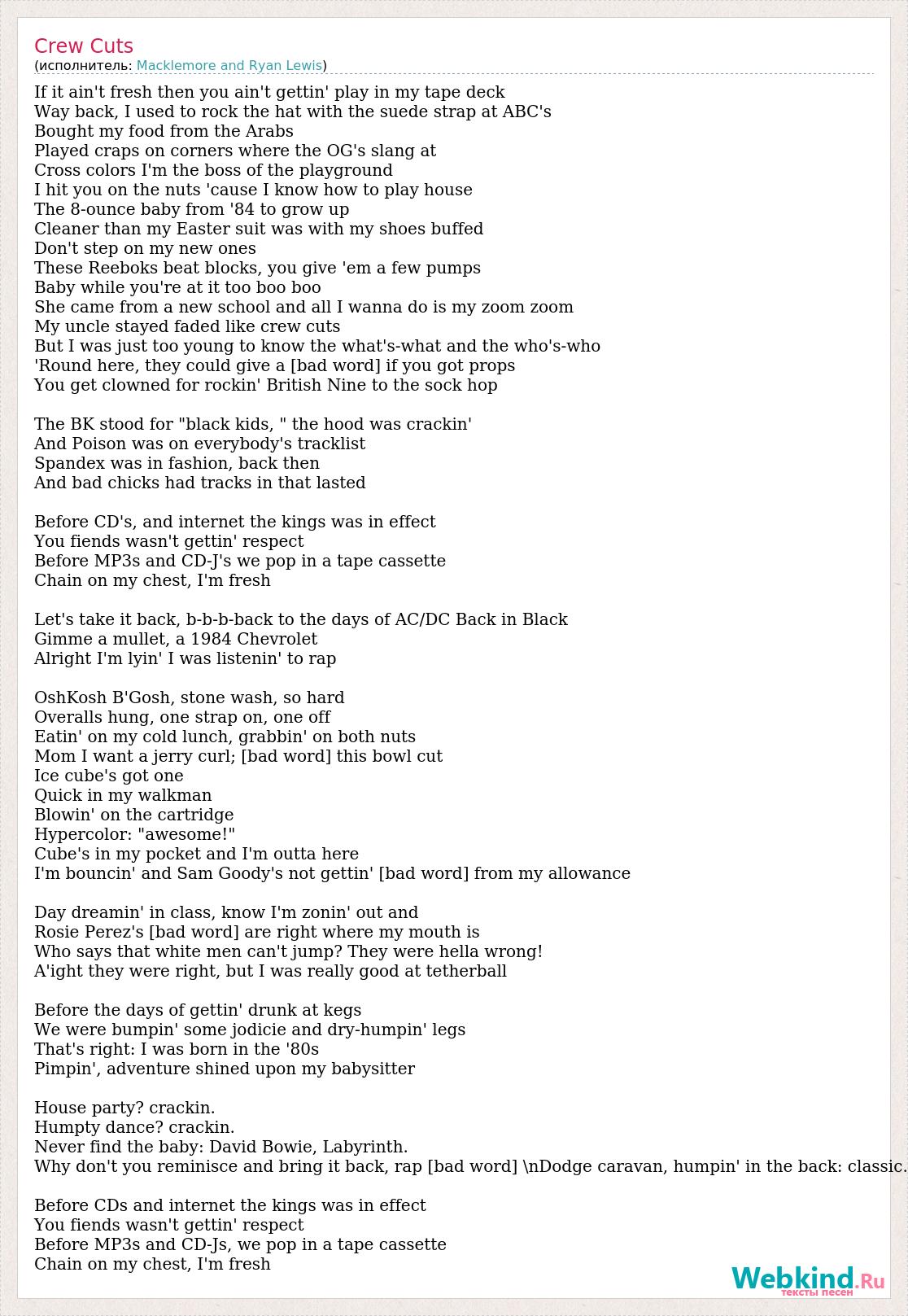 А как ты думаешь, о чем песня "Crew Cuts" ?