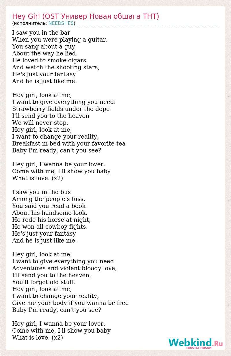 А как ты думаешь, о чем песня "Hey Girl (OST Универ Новая общага ТНТ)" ?