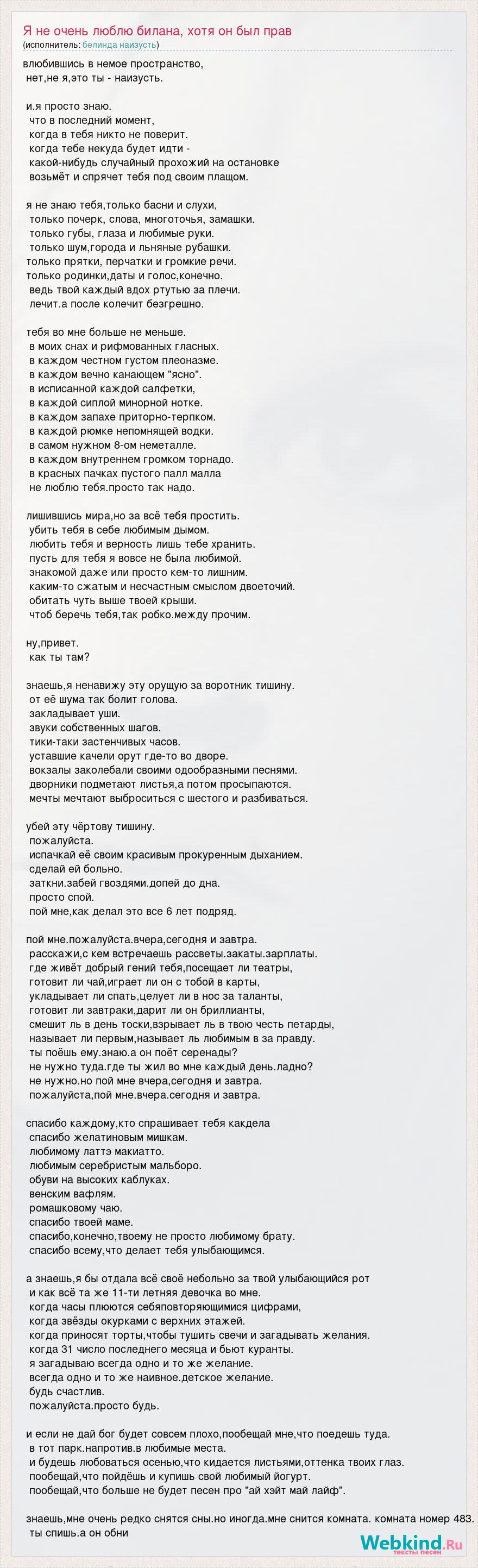 А как ты думаешь, о чем песня "Я не очень люблю билана, хотя он был прав" ?