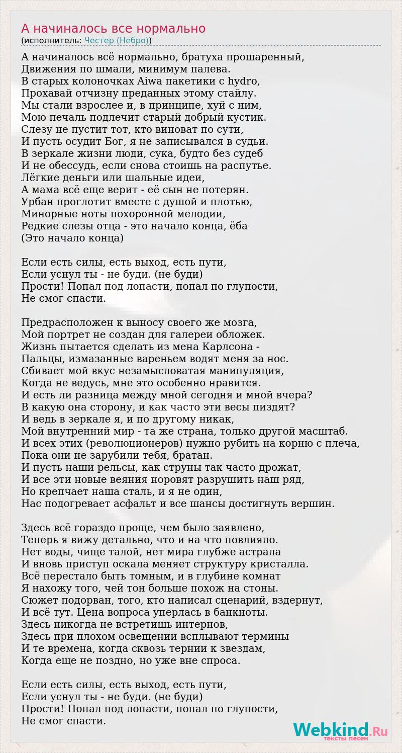 А как ты думаешь, о чем песня "А начиналось все нормально" ?