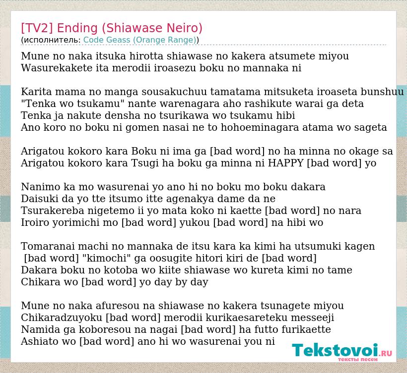 А как ты думаешь, о чем песня "[TV2] Ending (Shiawase Neiro)" ?