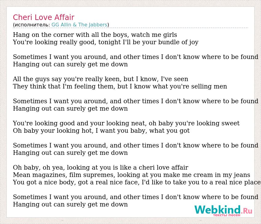 А как ты думаешь, о чем песня "Cheri Love Affair" ?