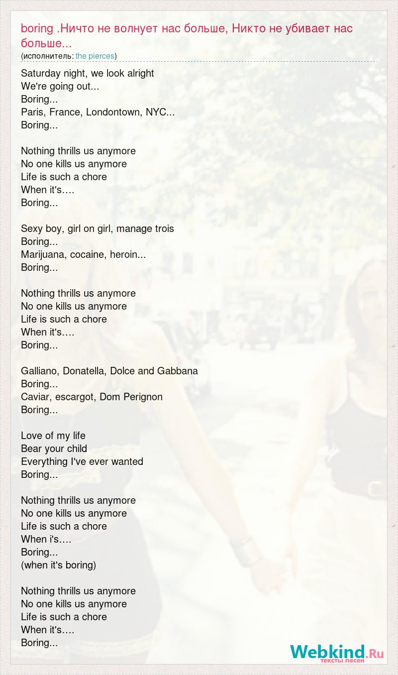 Boring .Ничто не волнует нас больше, Никто не убивает нас больше...