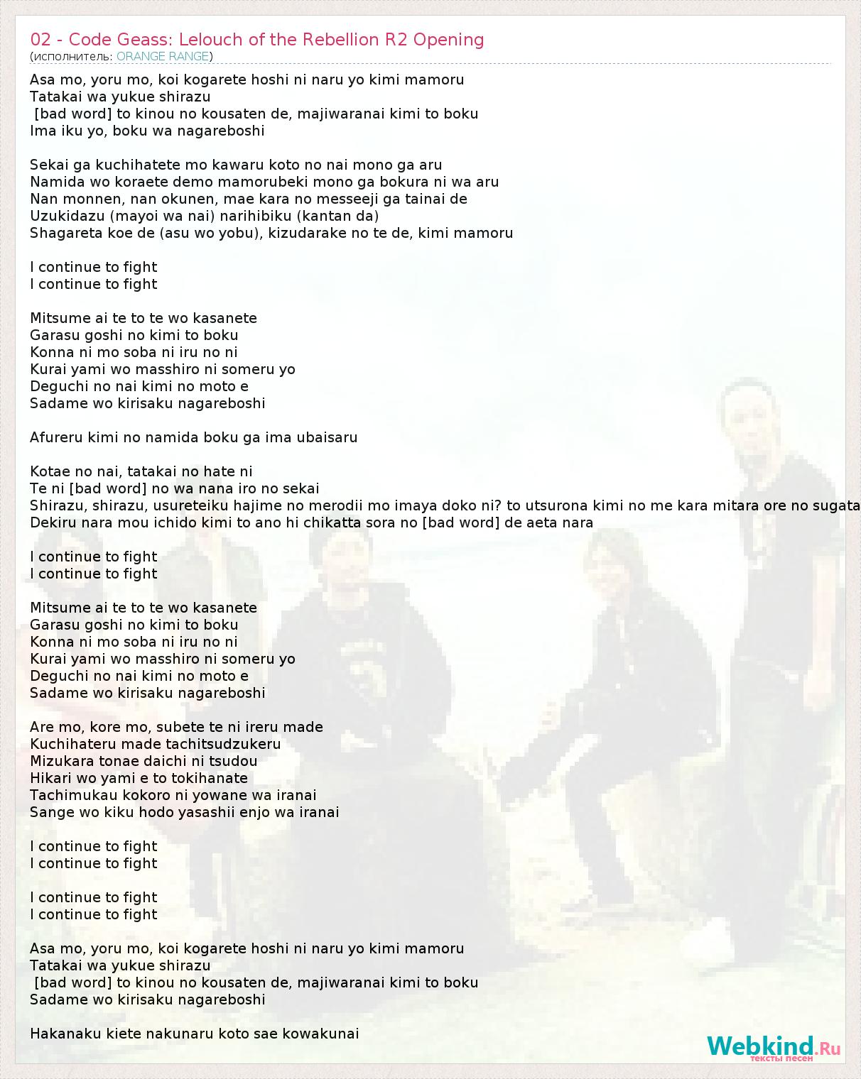 А как ты думаешь, о чем песня "02 - Code Geass: Lelouch of the Rebellion R2 Opening" ?