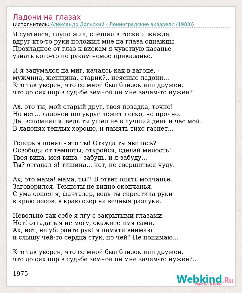 А как ты думаешь, о чем песня "Ладони на глазах" ?
