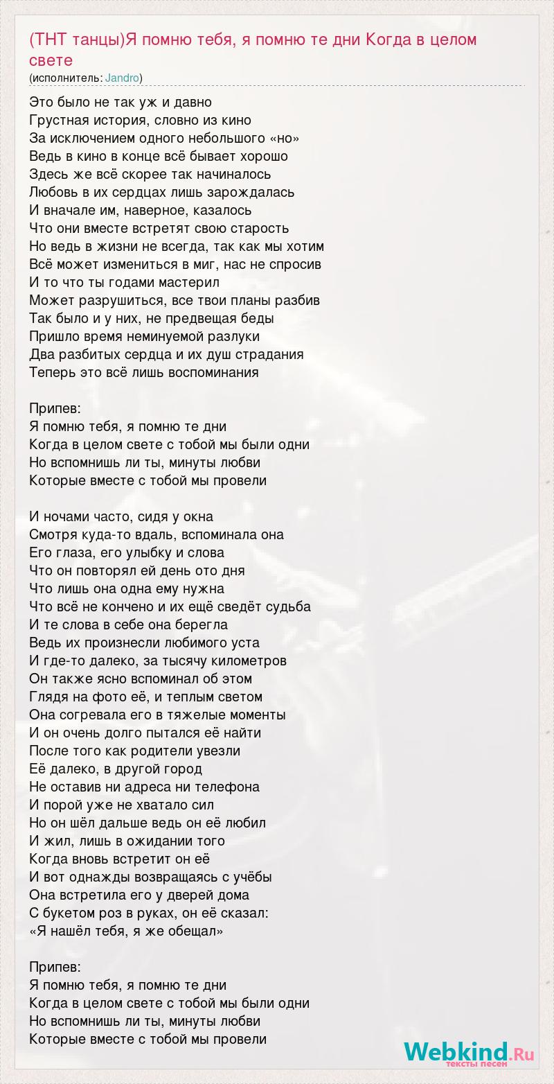 (ТНТ танцы)Я помню тебя, я помню те дни Когда в целом свете с тобой мы
