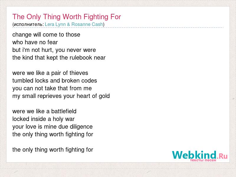 А как ты думаешь, о чем песня "The Only Thing Worth Fighting For" ?