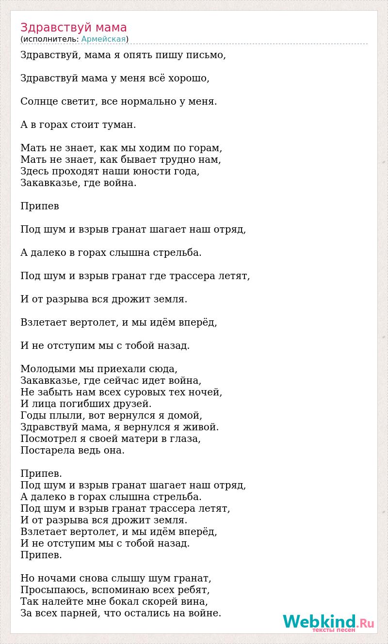 А как ты думаешь, о чем песня "Здравствуй мама" ?