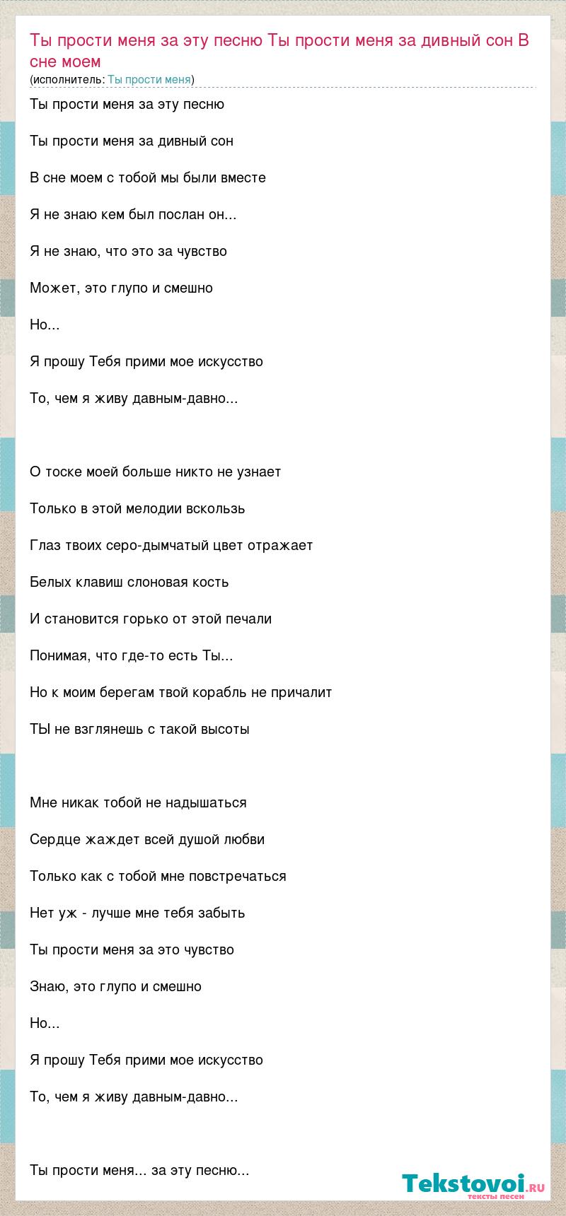 Главная→Исполнители→Ты прости меня→Ты прости меня за эту песню Ты прости меня за дивный сон В сне моем
