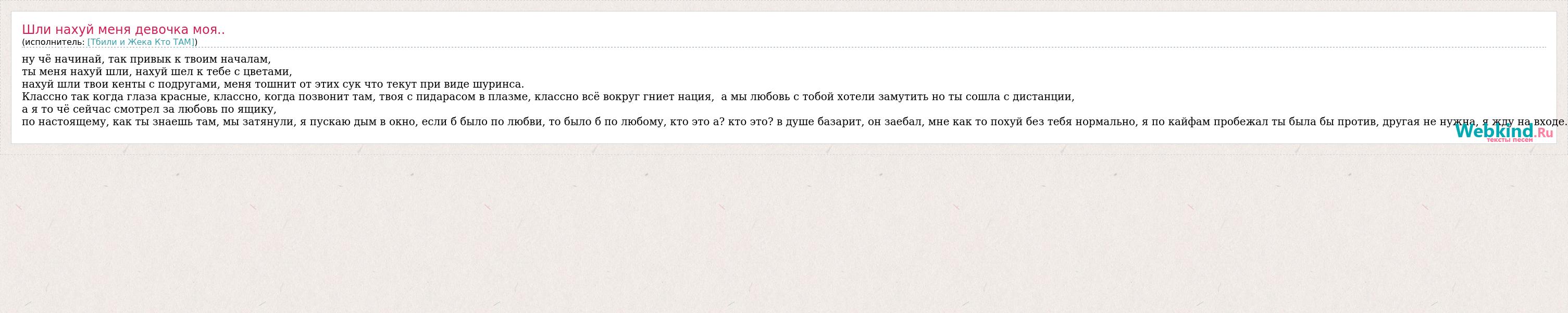 А как ты думаешь, о чем песня "Шли нахуй меня девочка моя.." ?