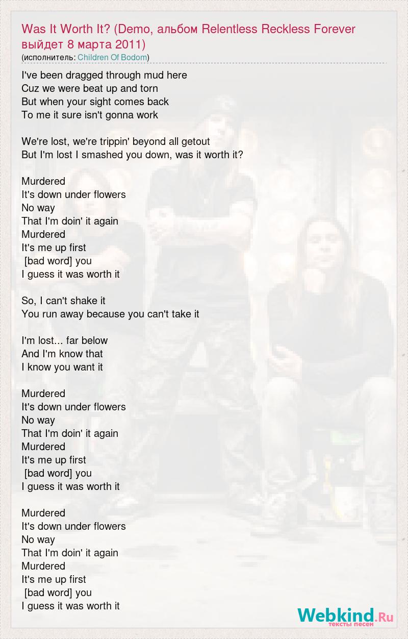 Главная→Исполнители→Children Of Bodom→Was It Worth It? (Demo, альбом Relentless Reckless Forever выйдет 8 марта 201