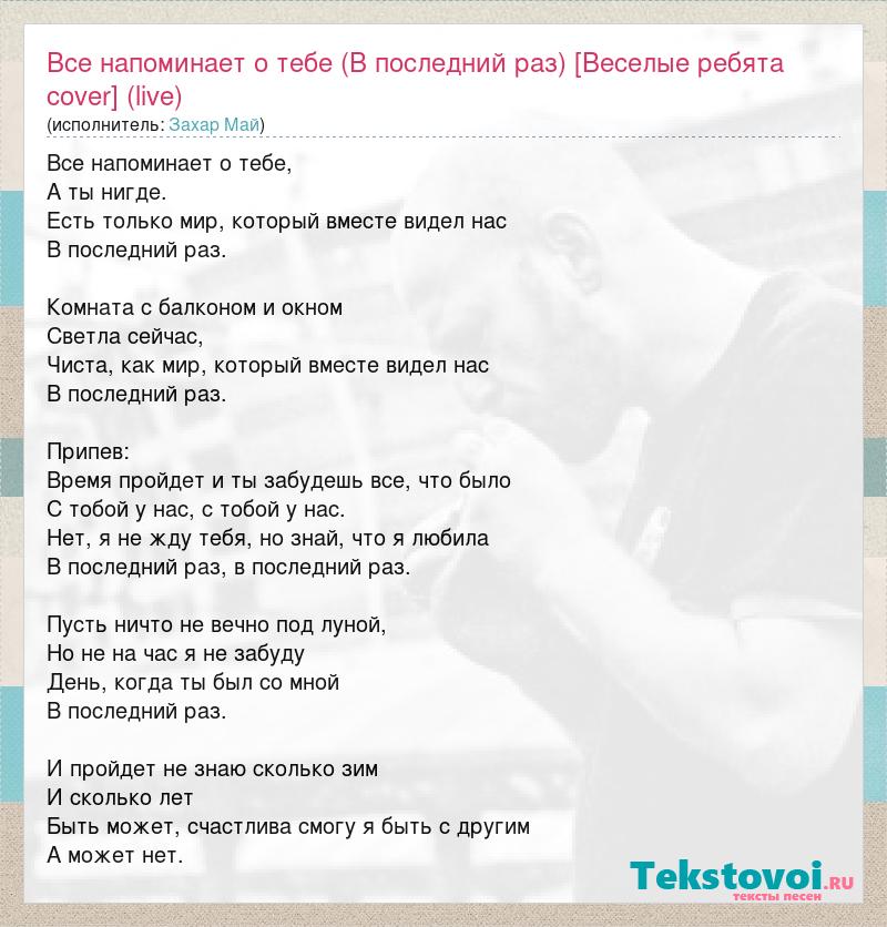 А как ты думаешь, о чем песня "Все напоминает о тебе (В последний раз) [Веселые ребята cover] (live)" ?