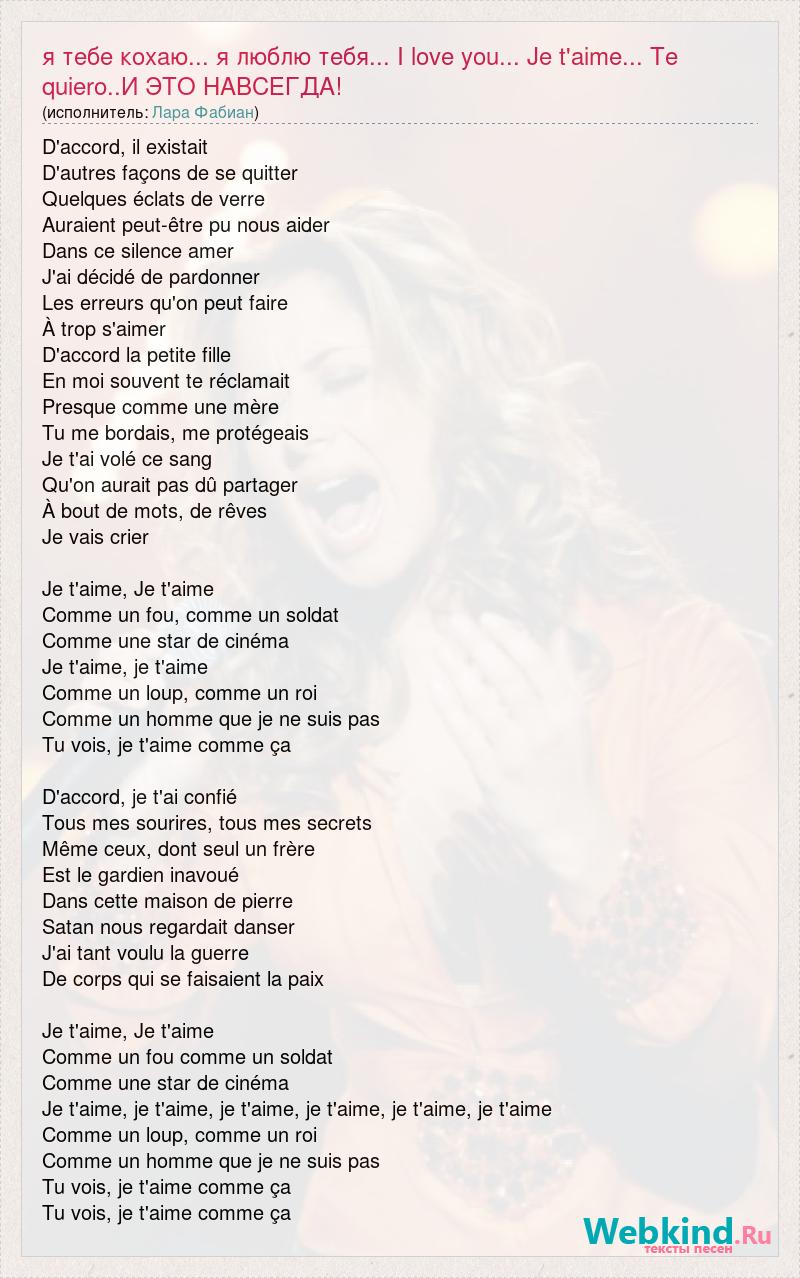 Главная→Исполнители→Лара Фабиан→Я тебе кохаю... я люблю тебя... I love you... Je t'aime... Te quiero..И ЭТО НА