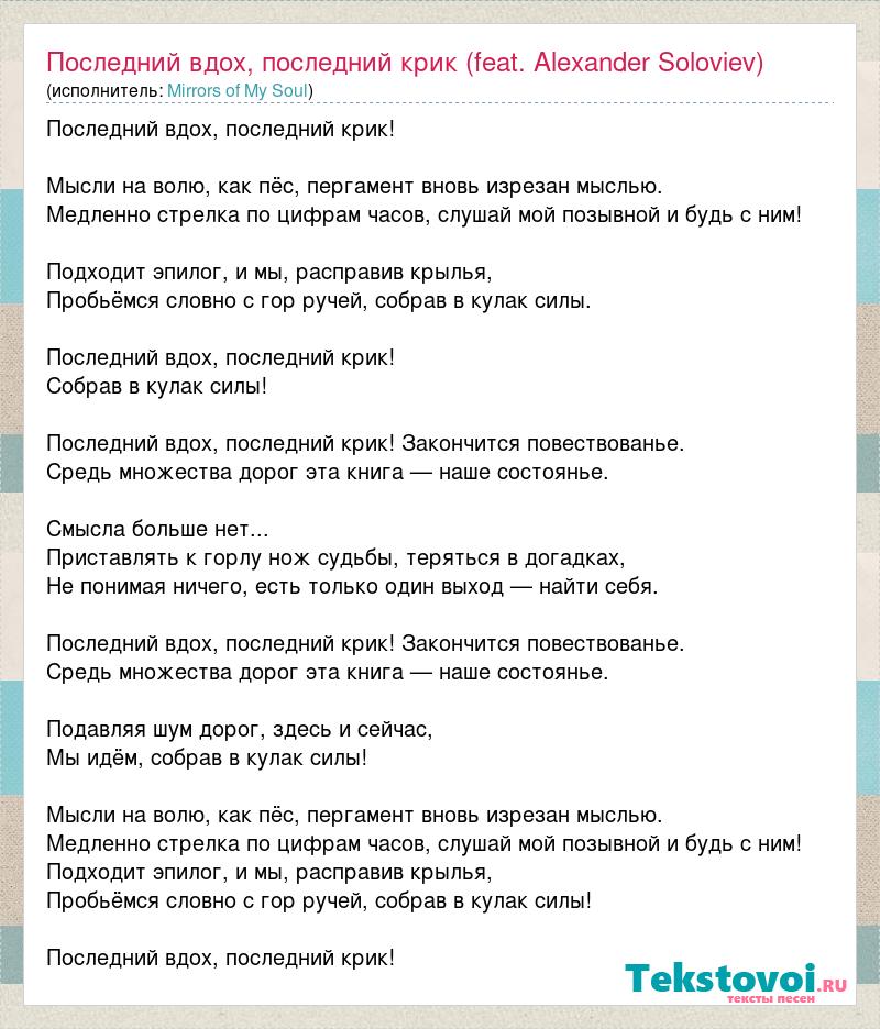 Последний вдох, последний крик (feat. Alexander Soloviev)