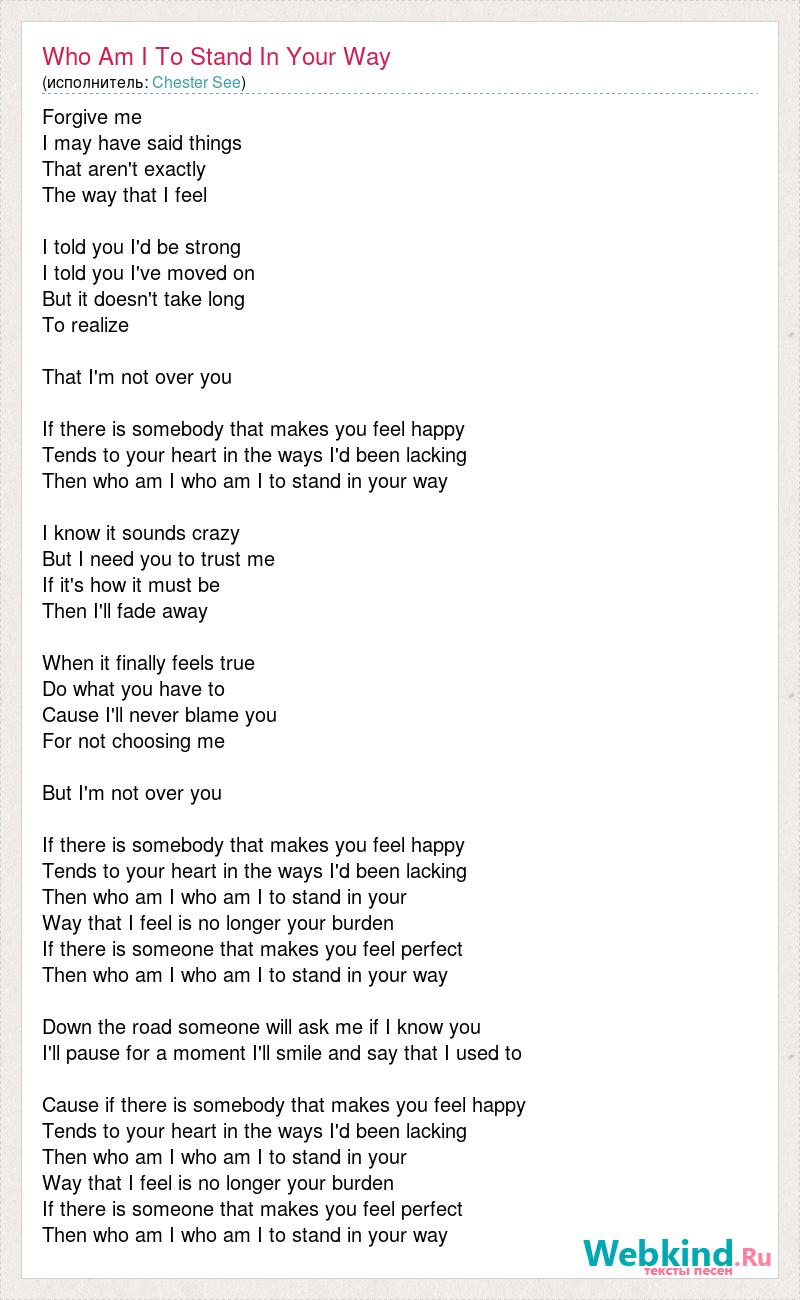 А как ты думаешь, о чем песня "Who Am I To Stand In Your Way" ?